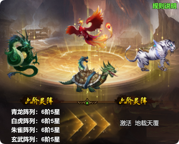 2.【灵阵升阶】新增六阶效果「地载天覆」:斗将战、军团战及军队战中,开局时,提高我方技能伤害防御,持续2回合。